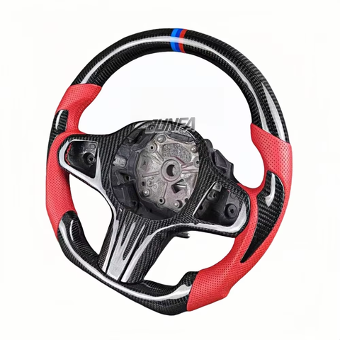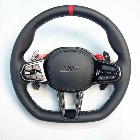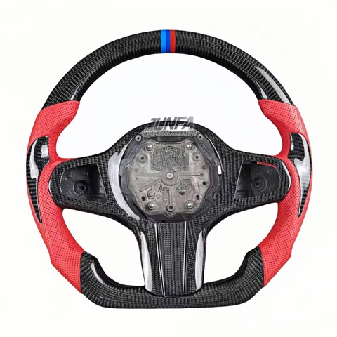 BMW F10 F30 E46 E60 F15 F90 F80 G20 G30 M3 M4 M5レザーカーボンファイバーF1レーシングエアクラフトスポーツスタイルステアリングホイールに適しています